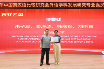 2022级英语(语言大数据)创新实验班朱子凝团队、姜泽源同学提交的研究成果,逻辑严谨、内容翔实,赢得了论坛专家和与会学者的一致好评,分别荣获特等奖和一等奖的优异成绩。